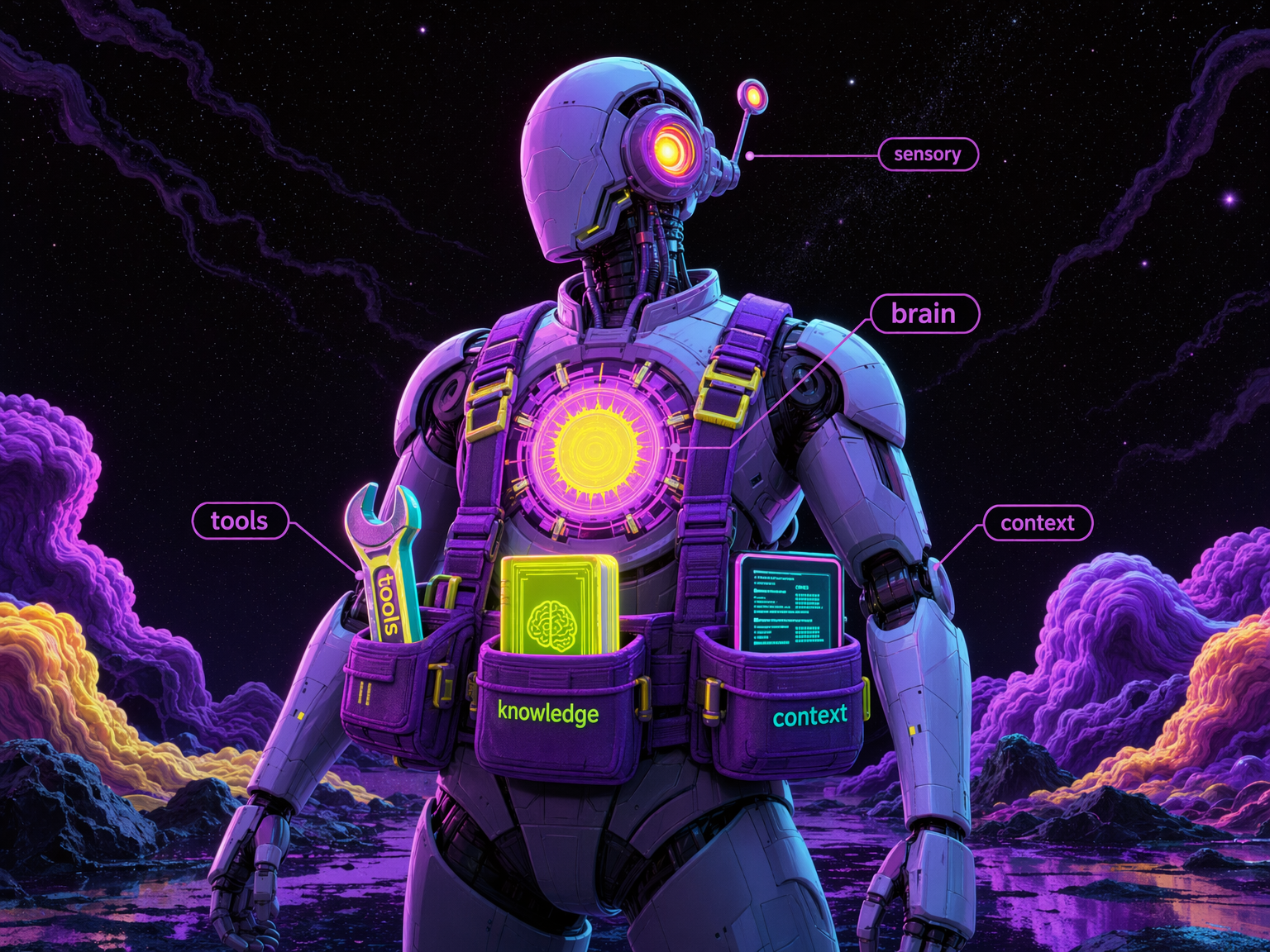 - Brain: the LLM. It reasons, generates text, makes decisions. But alone it can't do anything.